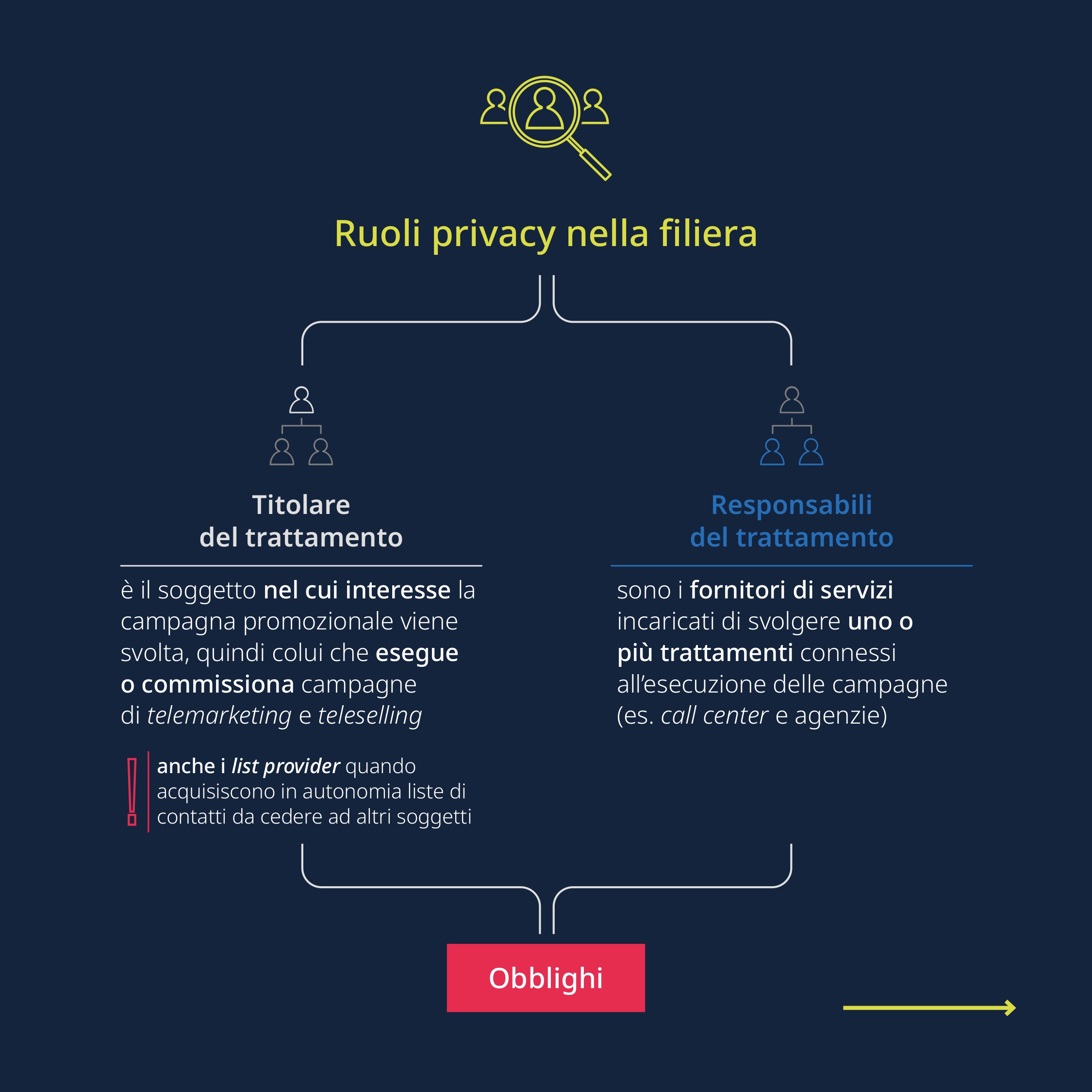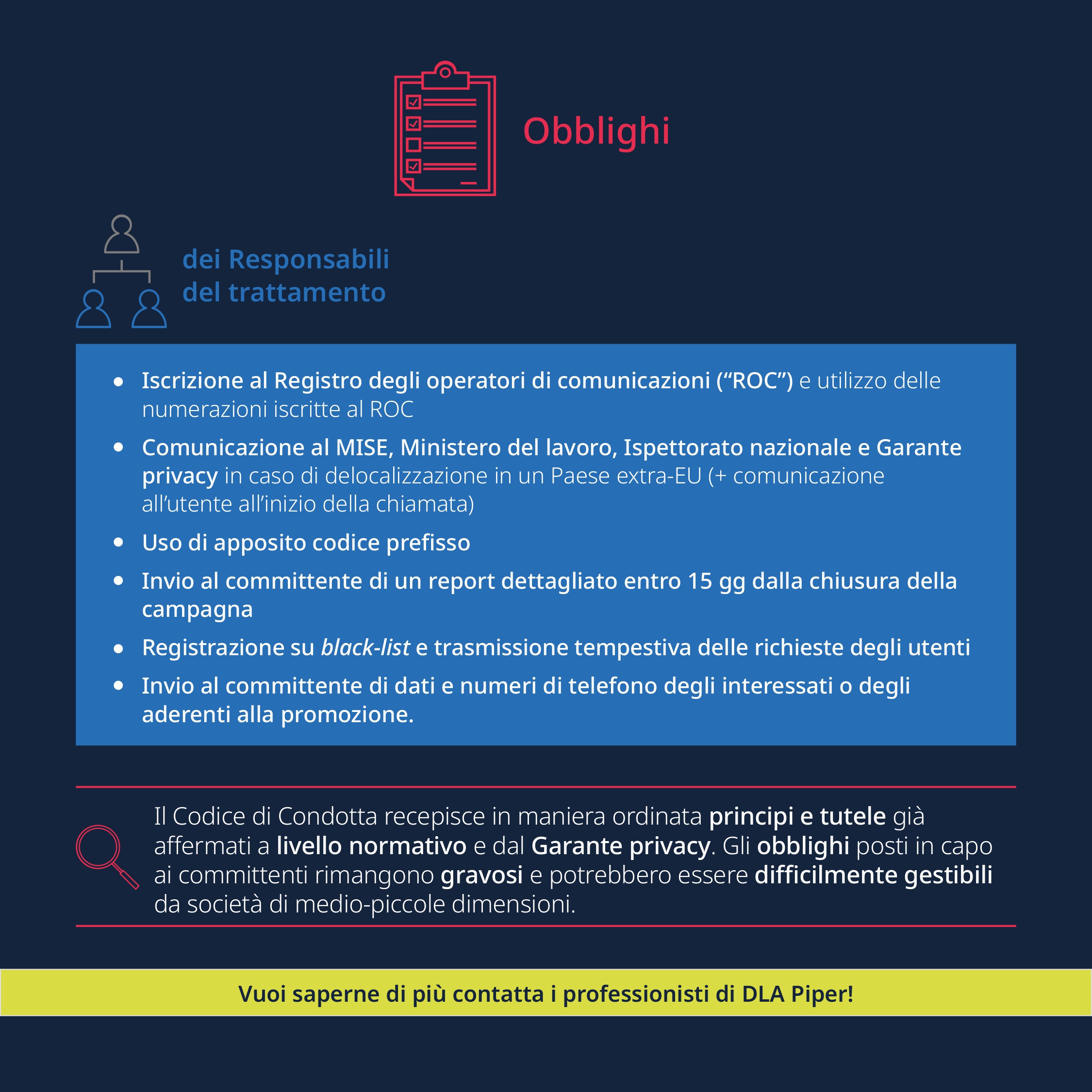 Pubblichiamo una infografica che riassume in stile legal design gli obblighi principali in materia di privacy che emergono dal Codice di Condotta sul telemarketing e teleselling.
