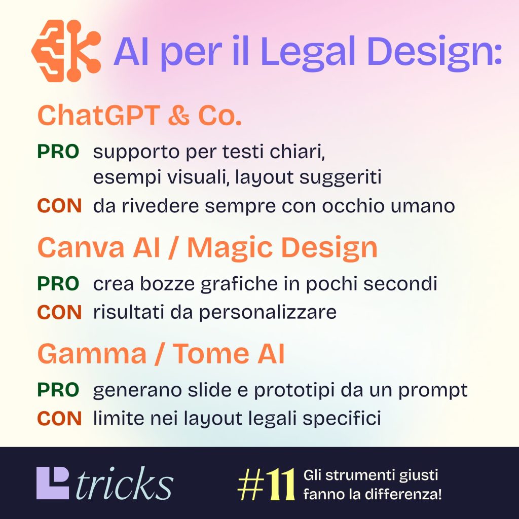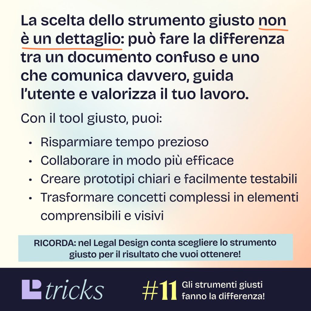 Ricorda: nel Legal Design conta scegliere lo strumento giusto per il risultato che vuoi ottenere!